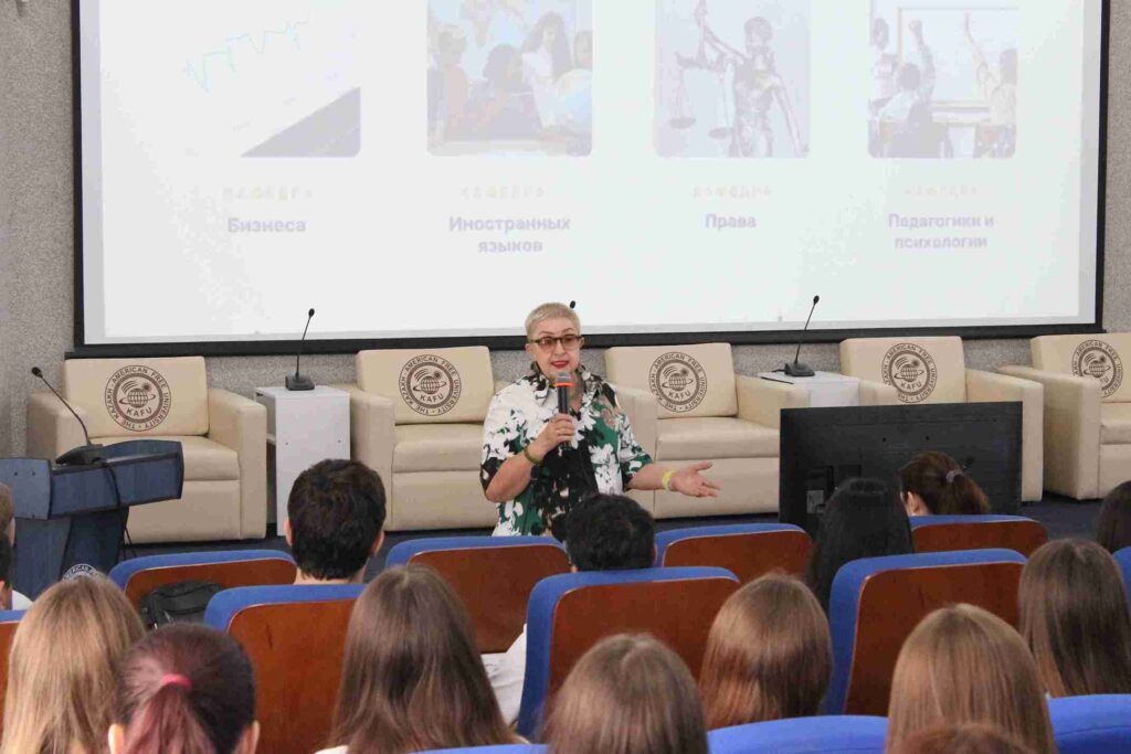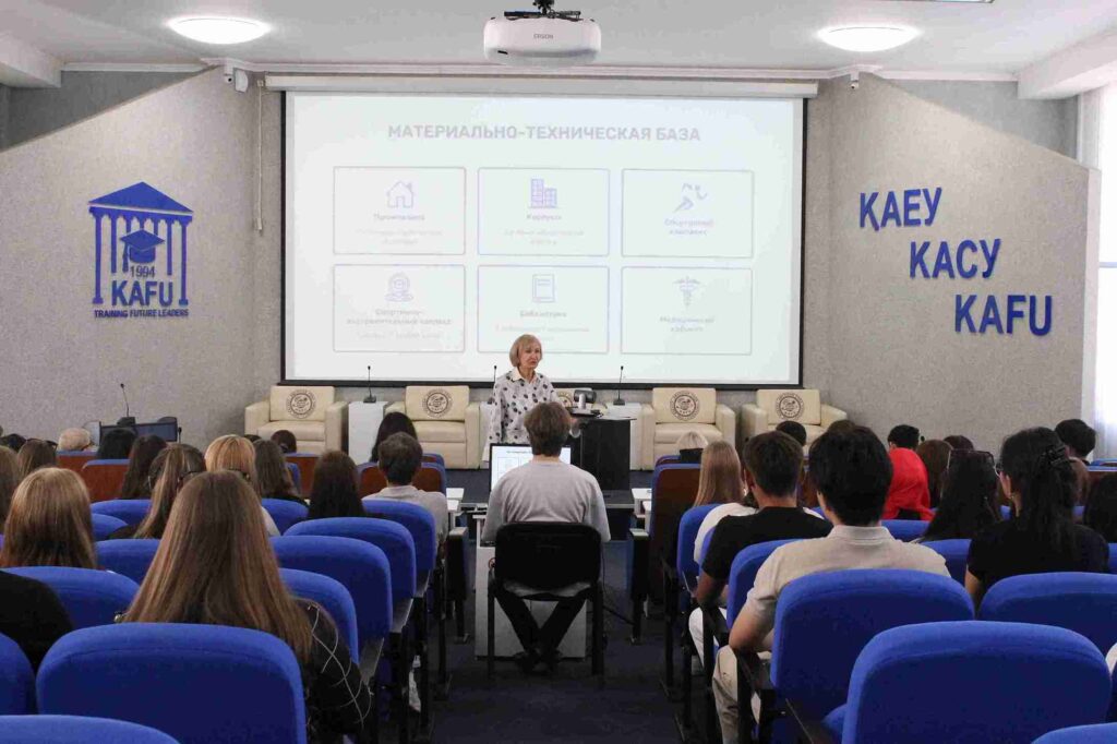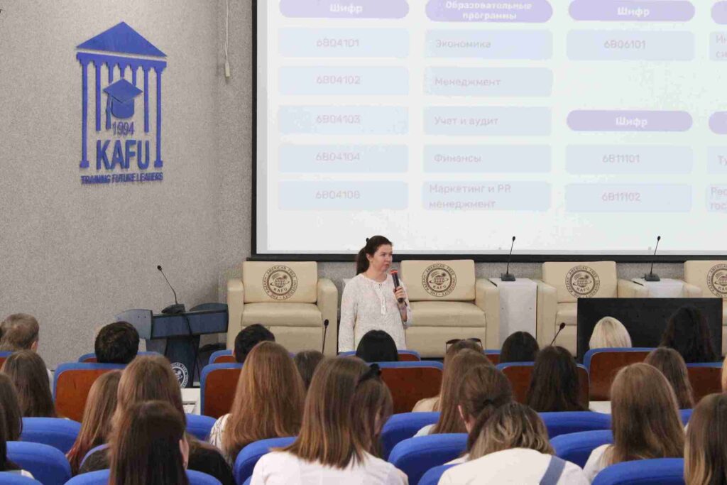 The event was attended by the head of the business department Ilona V. Bordiyanu, the dean of the faculty of “Business, Law and Pedagogy” Galina A. Menzyuk, the dean of the faculty of shortened educational programs Nadezhda M. Shefer, the director of the Center for Information Support and Digital Educational Technologies Yuliya V. Trofimova, as well as the head of the marketing and admissions department of KAFU Azamat B. Berdibekov, who presented the educational programs of the university, spoke about the advantages of studying at KAFU, admission conditions, extracurricular activities and employment prospects for graduates.
