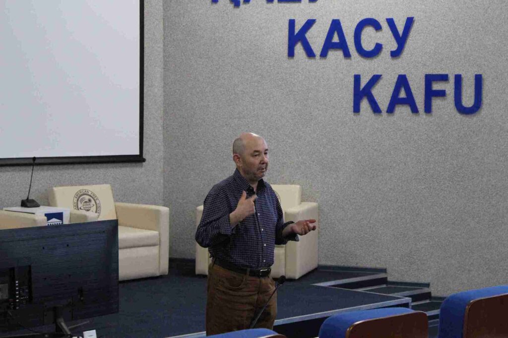 Профессор Моқанұлы өз зерттеулері, лингвистикаға деген қызығушылығының себептері және Вашингтон штаты университетіндегі қызметі туралы әңгімелеп берді. ҚАЕУ студенттері өздерін қызықтырған сұрақтарды қою мүмкіндігіне ие болды. Атап айтқанда, тіл үйрену, көптілділік және көптілді тұлғаның қалыптасуына кедергі келтіретін тосқауылдар мәселелері қозғалды.