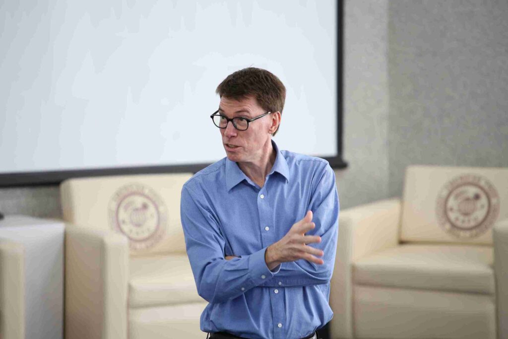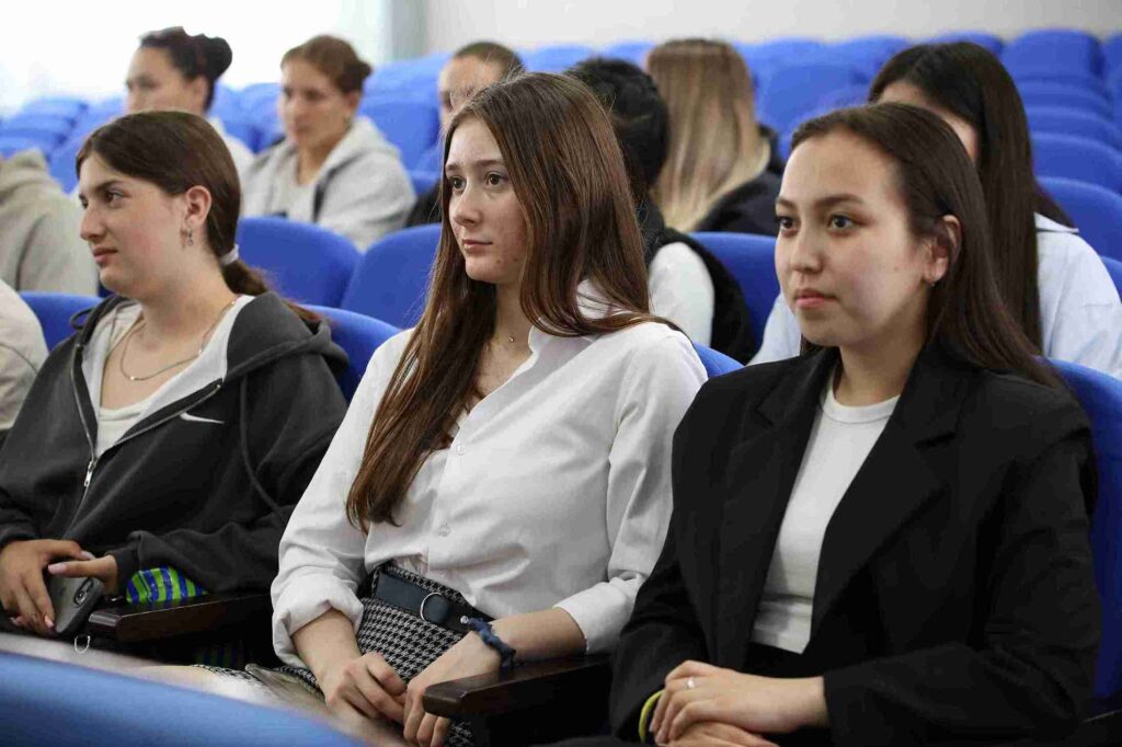 “Педагогика және психология” кафедрасының меңгерушісі Нұрланова А.Н. университетте білім алудың артықшылықтары, жатақханадағы тұрмыс жағдайлары және оқу орнын бітіргеннен кейінгі жұмысқа орналасу мүмкіндіктері туралы айтты.