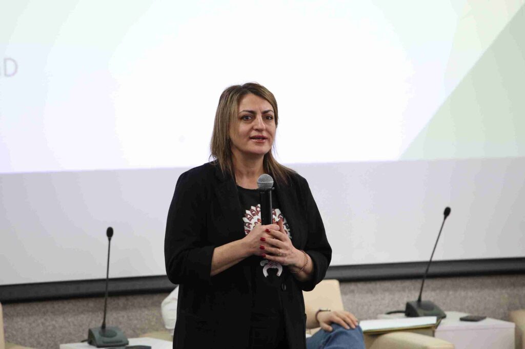 Научный StandUp открыла своим выступлением доктор PhD, ведущий преподаватель кафедры педагогики и психологии Фатима Велибековна Искендерова. Она провела с аудиторией короткую нейрогимнастику и рассказала о своём пути в психологию, а также о том, как сохраняла мотивацию с помощью различных техник.