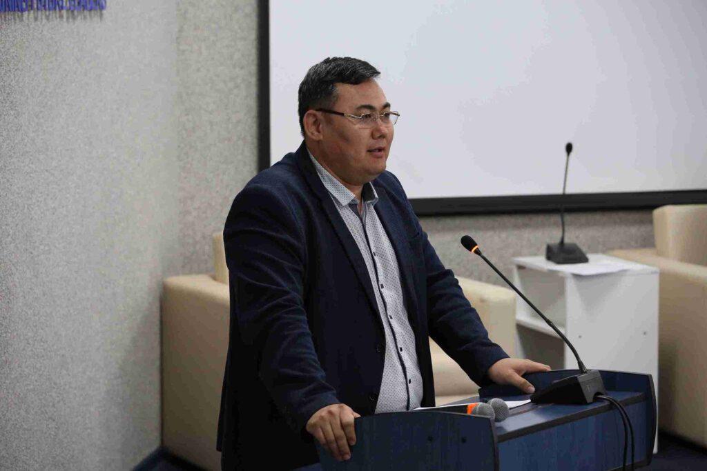 Особенно зрителям запомнилось выступление доктора PhD, заведующего кафедрой права и международных отношений Кайрата Оралкановича Алембаева, который с юмором поделился историей о сложностях в выборе темы для своей докторской диссертации.