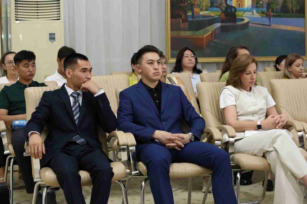 Также во встрече от КАСУ приняли участие Вице-президент по международным программам и сотрудничеству Дениел Бэлласт, Первый вице-президент Жасулан Байкенов, Проректор по научной работе и развитию послевузовского образования Юлия Гаврилова, а также профессорско- преподавательский состав университета.